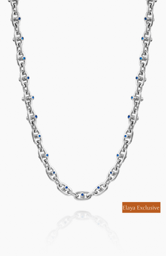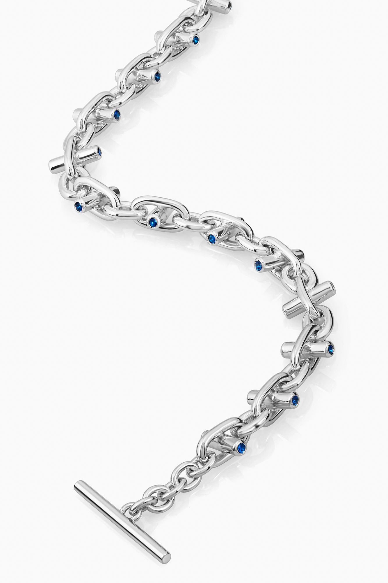 sterling silver, using rhodium and vermeil platings and precious stones and pearls.
